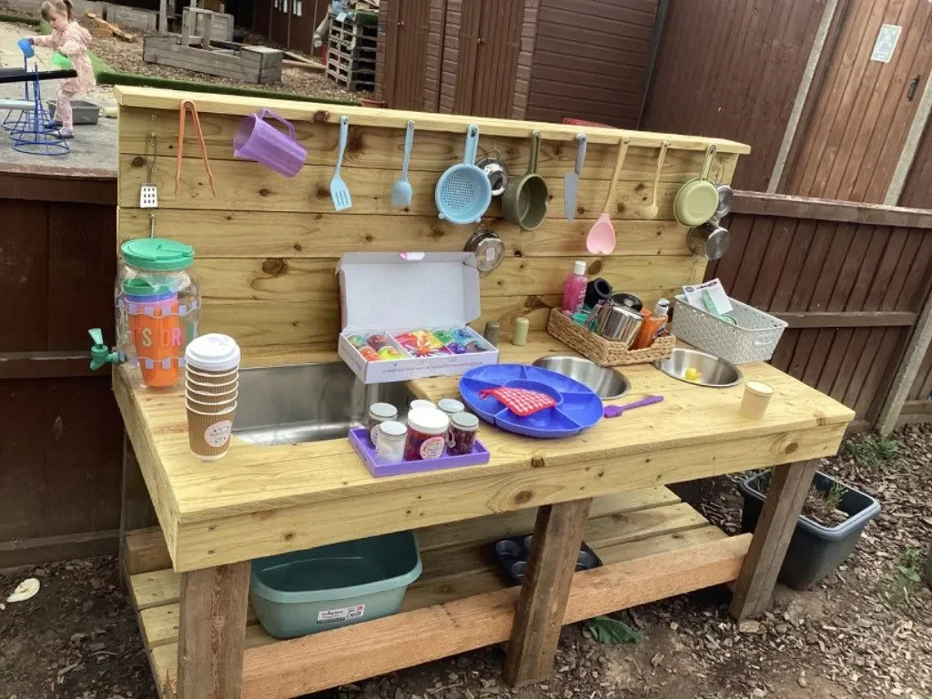 Our Toddler Room and Preschool Room share a large outdoor area. We have a mud kitchen area which the children love going into and getting messy whilst making their own yummy mud pies!! We also have a growing area where the children are involved in helping to grow different vegetables and fruit, which the chef uses to make the children's home made meals.
