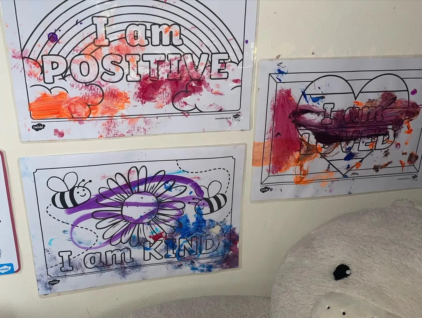 Below, you can see one of our finger tracing activities that are displayed within our regulation station. A staff member will support the children to choose an image of their choice and they will use their finger to follow the lines. This helps to focus on something different and will support their breathing, whilst their body begins to relax.
