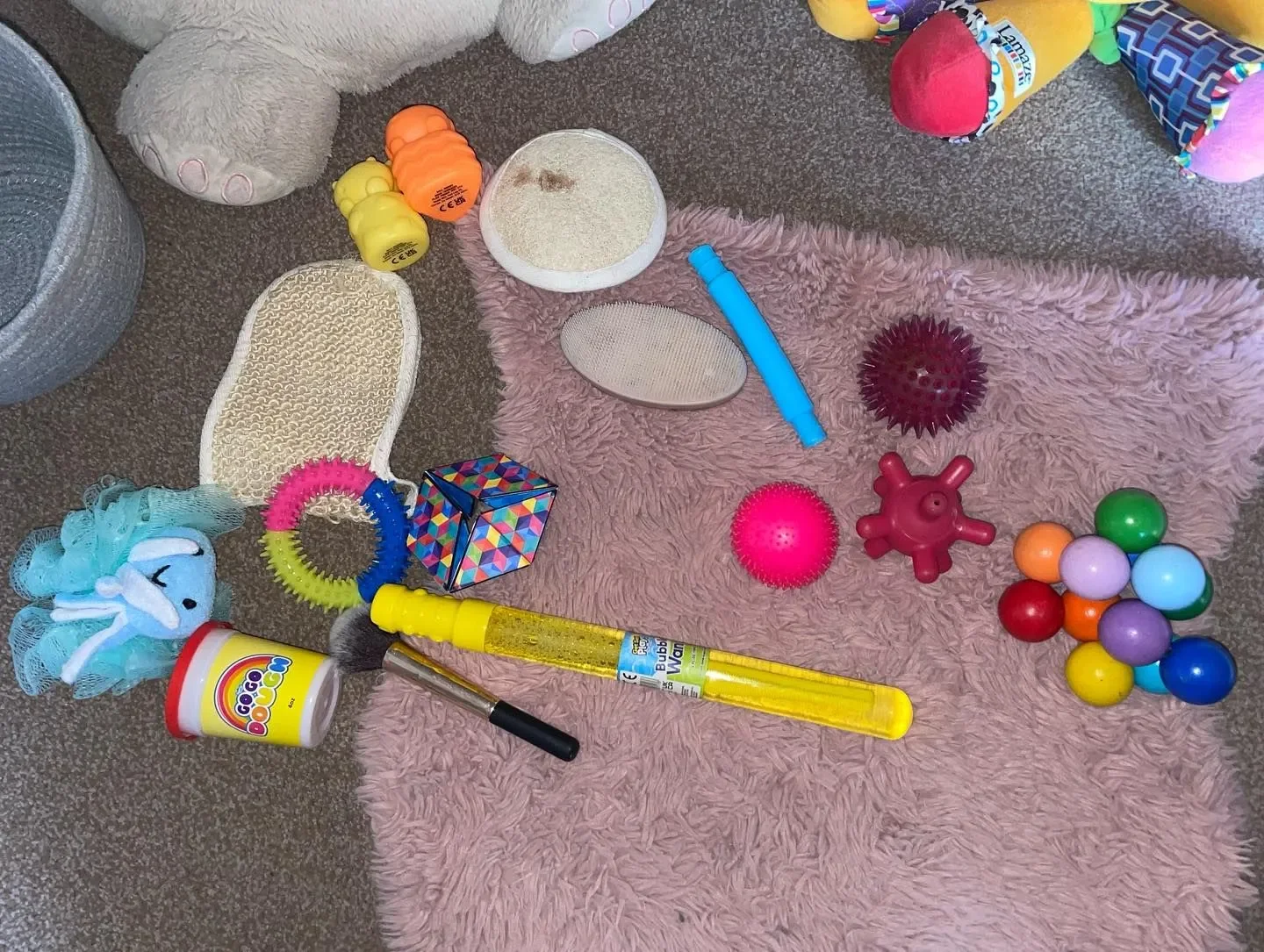 The Regulation Station has a range of different resources to support the child. There are sensory items which support all of the 5 senses such as playdough, fidget toys, bubbles etc.