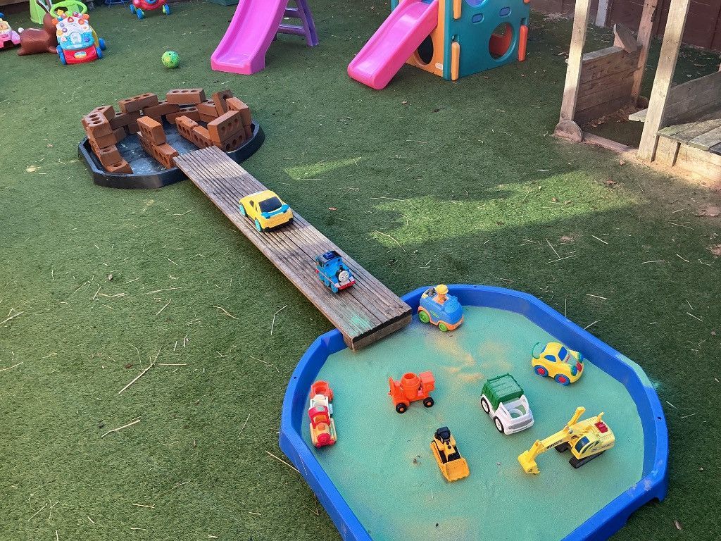 The garden area is set up to provide a very similar learning experiences to indoors, there is several different activities set up based on the children's interests and the 7 areas of the EYFS.